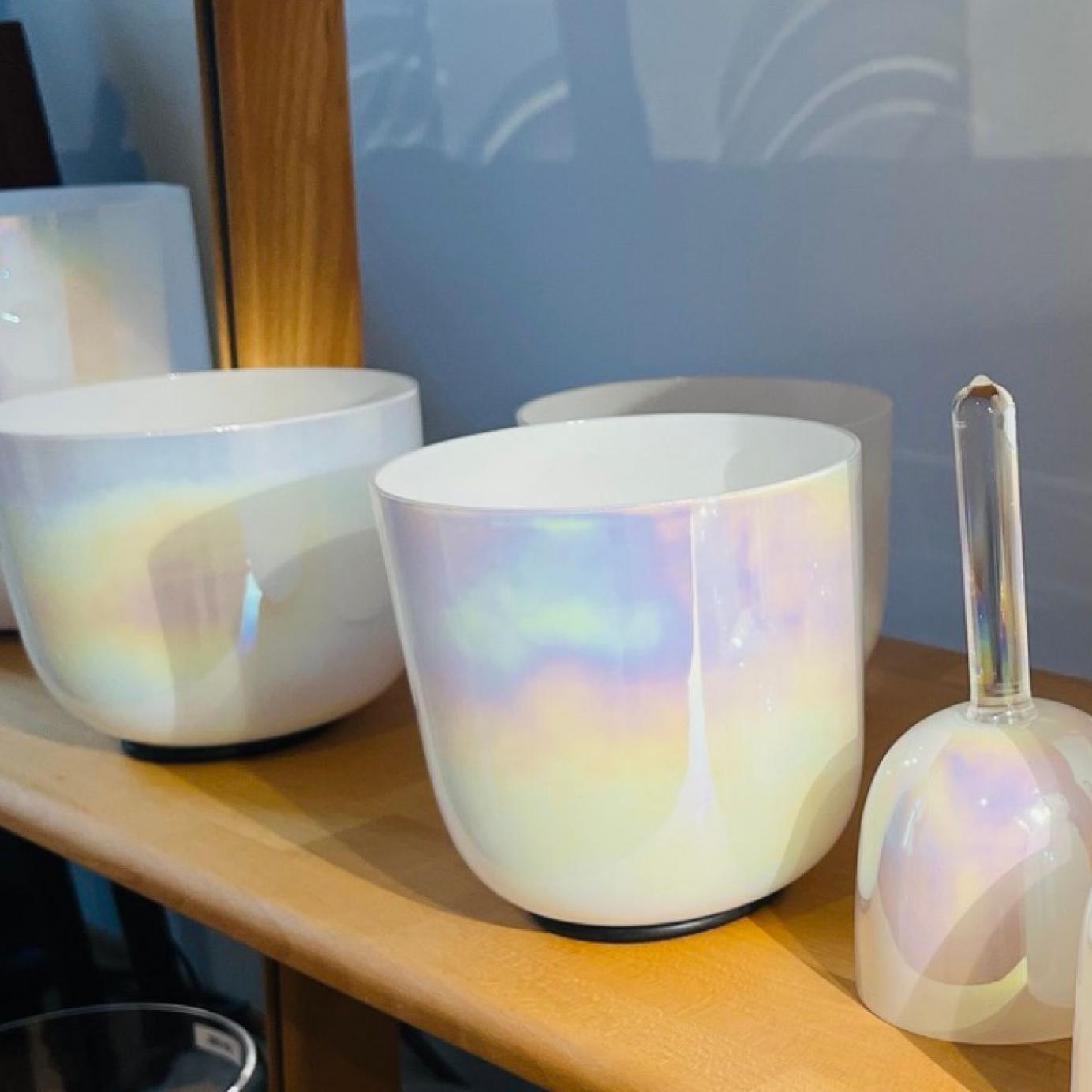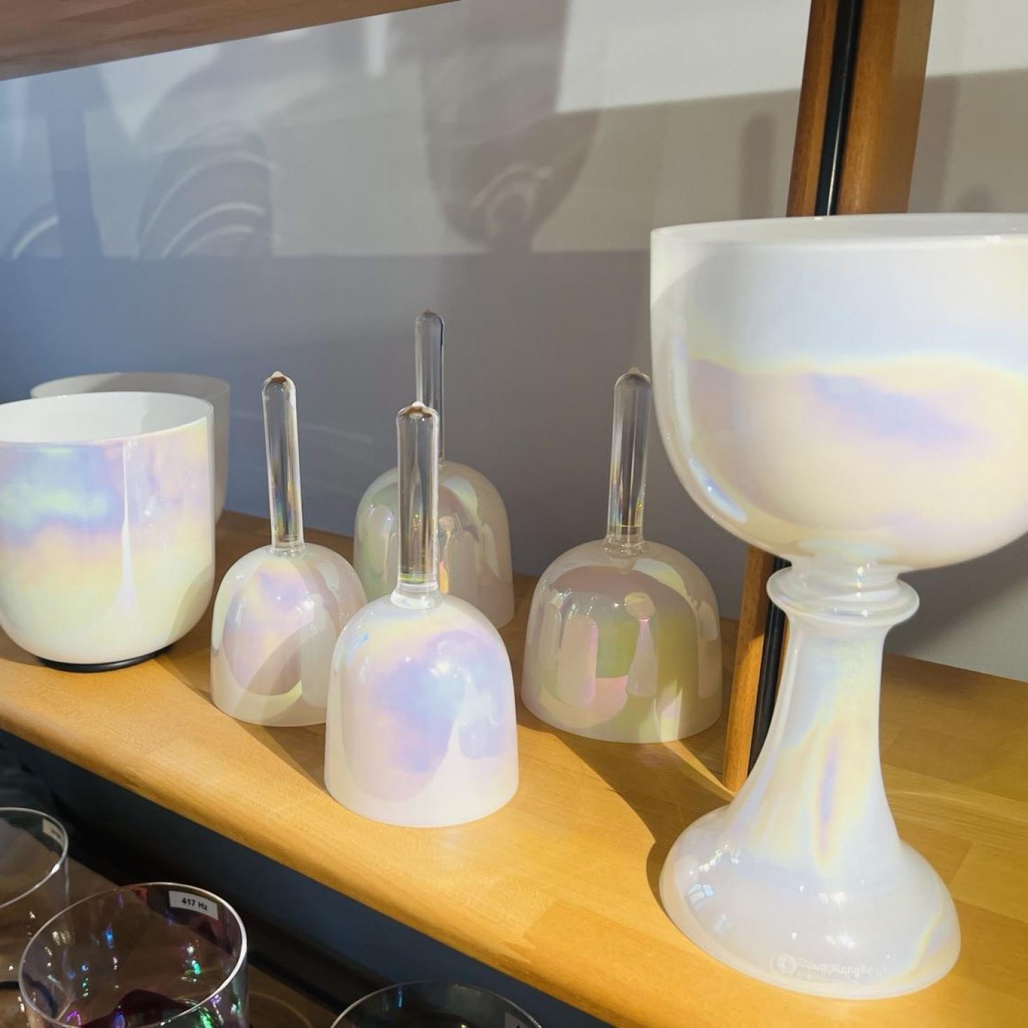 Diese Kristallklangschalen sind gerade eben eingetroffen und freuen sich auf eine Heimat.