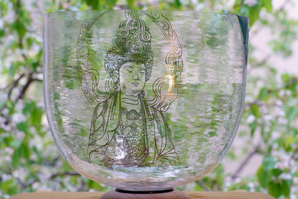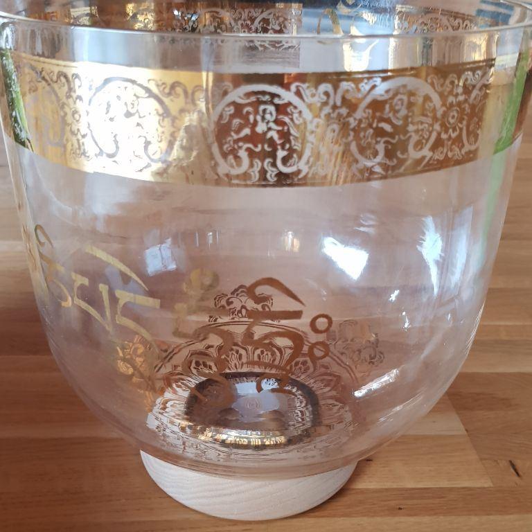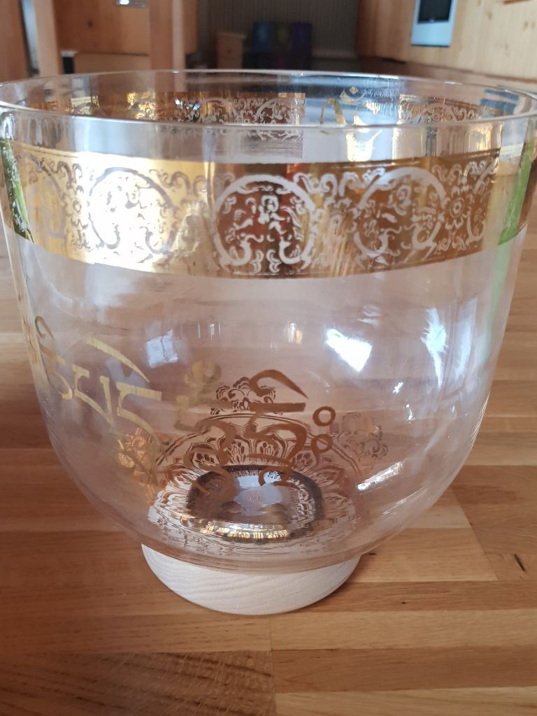 Die oben gezeigte Kristallklangschale ist nur ein Anschauungsbeispiel für eine klare Premiumschale mit 24K Gold.