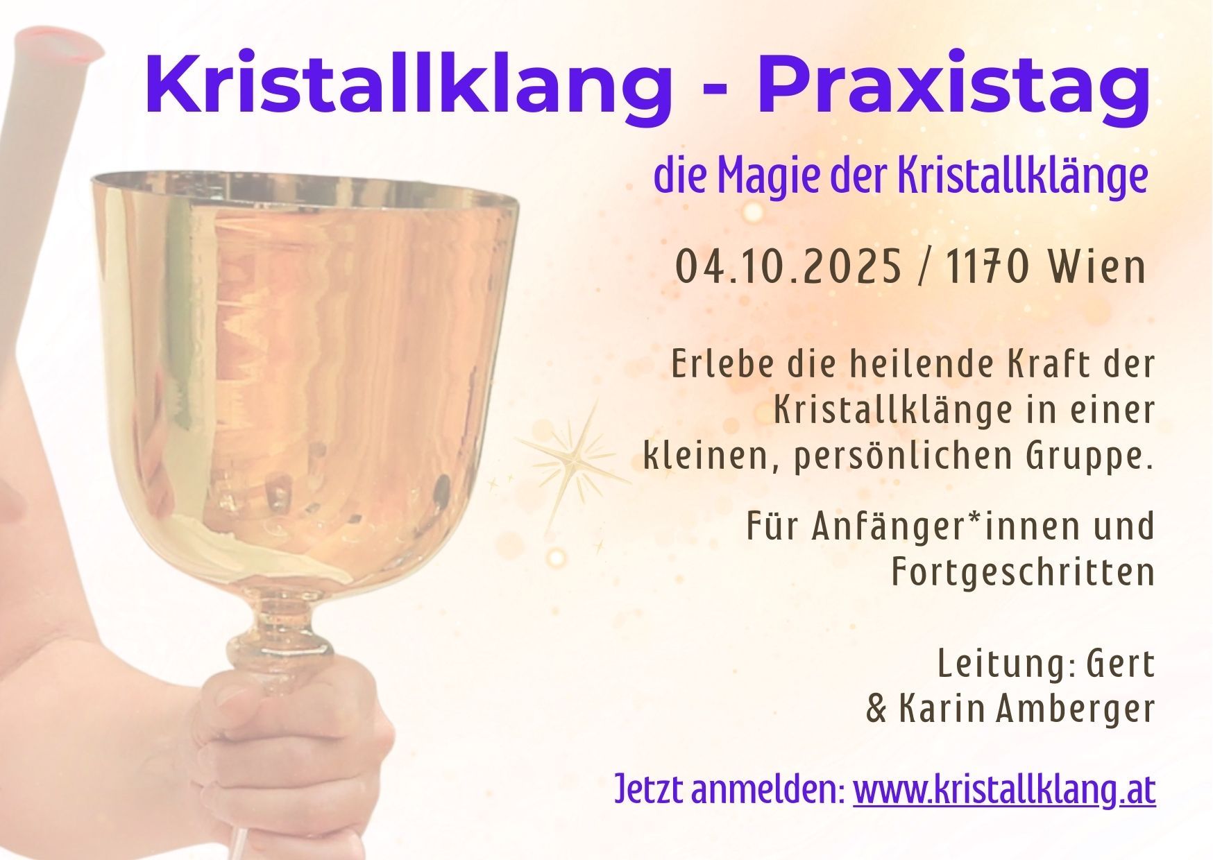 Gert und Karin Amberger bringen jahrzehntelange Erfahrung in Sachen Klang, Frequenz, Bewusstsein und Kristallklängen mit.